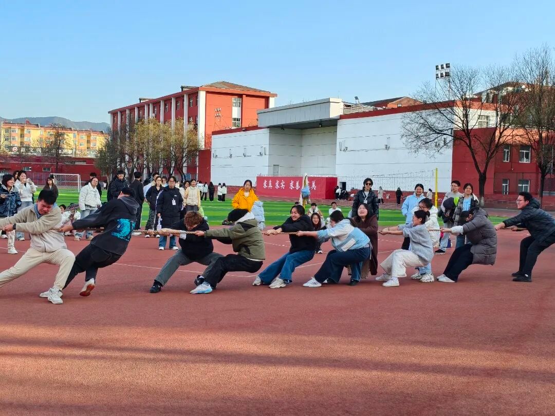 随着裁判员一声哨响,南北两校区的拔河比赛同步拉开帷幕。赛场上,参赛选手们紧握长绳,双脚蹬地、重心后移,拼尽全力往后拉扯;赛场下,各院系同学摇旗呐喊,“加油!加油!”的助威声此起彼伏,响彻两校区运动场。每一轮较量都扣人心弦,绳索的每一次移动,都凝聚着团队的力量与默契;每一次坚持,都彰显着我校学子不服输、不放弃的意志品质。无论是实力悬殊的速胜,还是势均力敌的拉锯战,选手们始终以饱满的热情投入比赛,用汗水诠释着“团结就是力量”的真谛。
