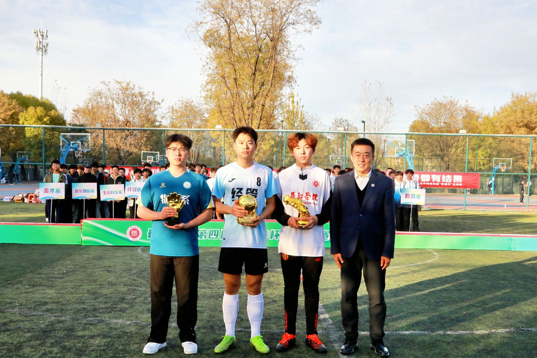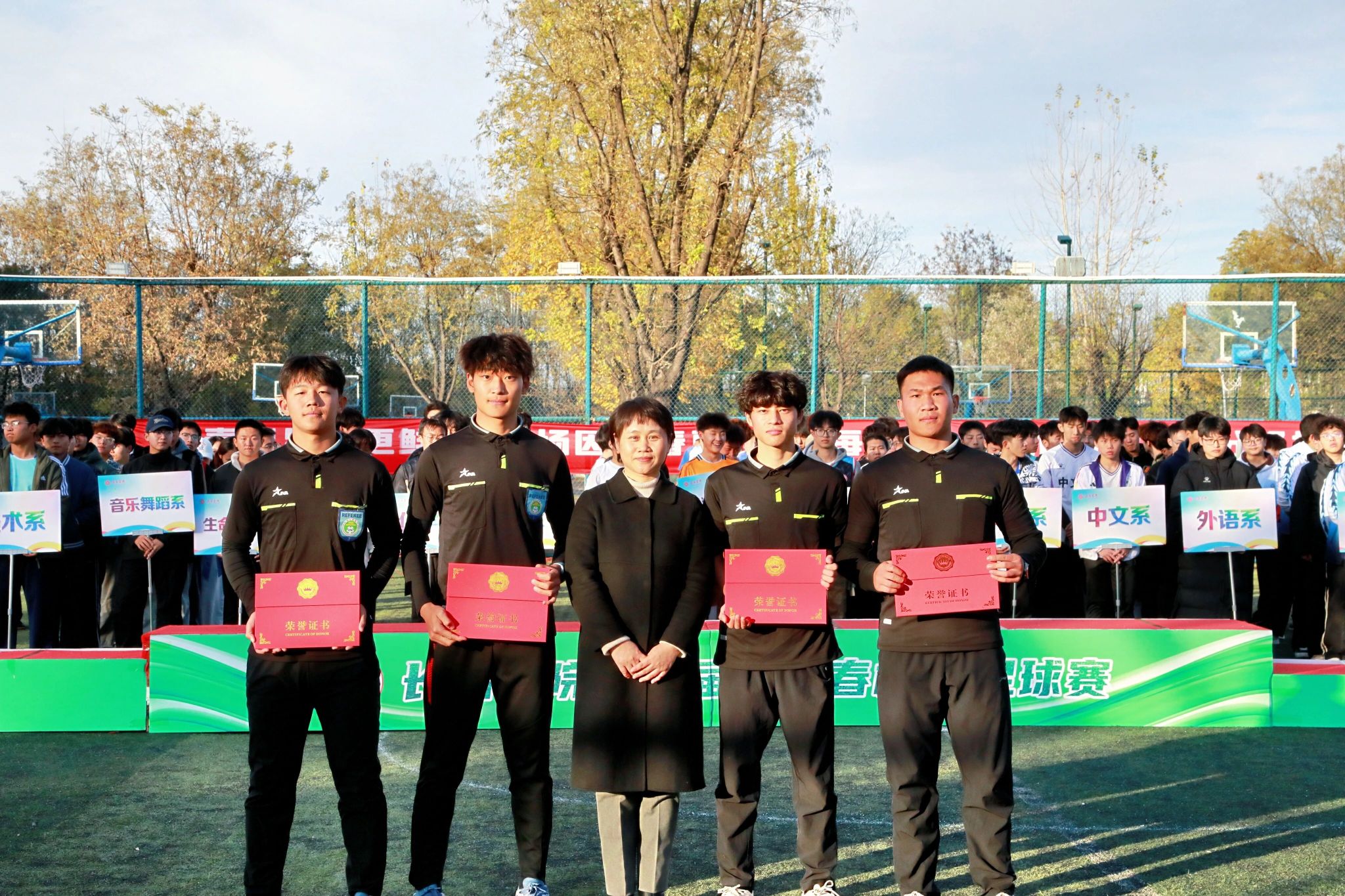 体育系党委副书记、主任李明为最佳球员、最佳射手和最佳守门员颁奖
