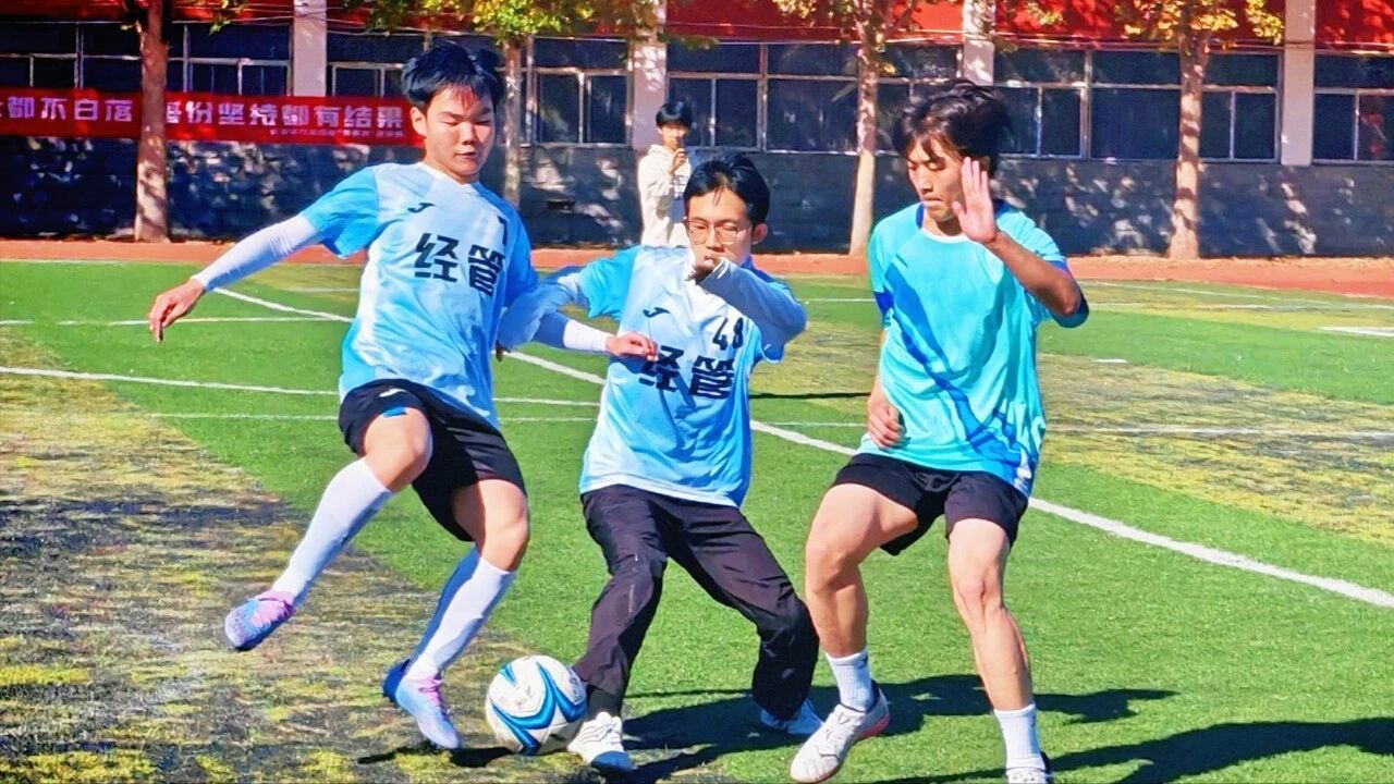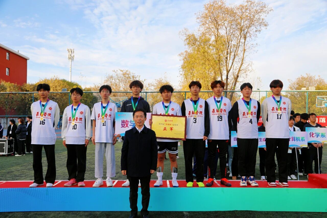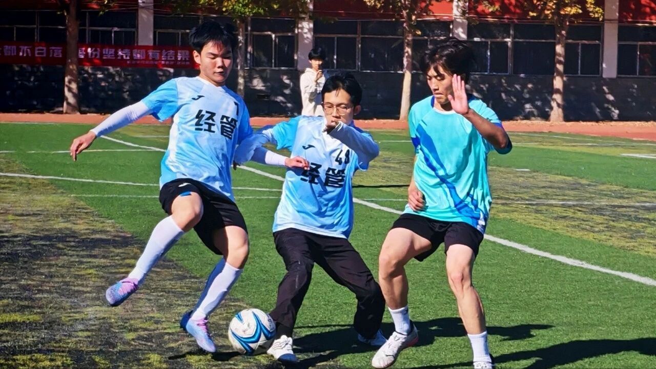 场上,球员们秉持“友谊第一,比赛第二”的体育精神,展现出精准传球、巧妙配合、顽强防守、果断射门等精彩表现。场下,各院系啦啦队为运动员呐喊助威,志愿者们在赛场各处提供后勤服务。现场师生热情互动,让绿茵场成为充满温情与力量的青春舞台。最终,经济与管理系摘得桂冠,数学系、物理系分获二、三名,赛事同时评选出了“优秀裁判员”“道德风尚奖”等单项奖与集体奖项。