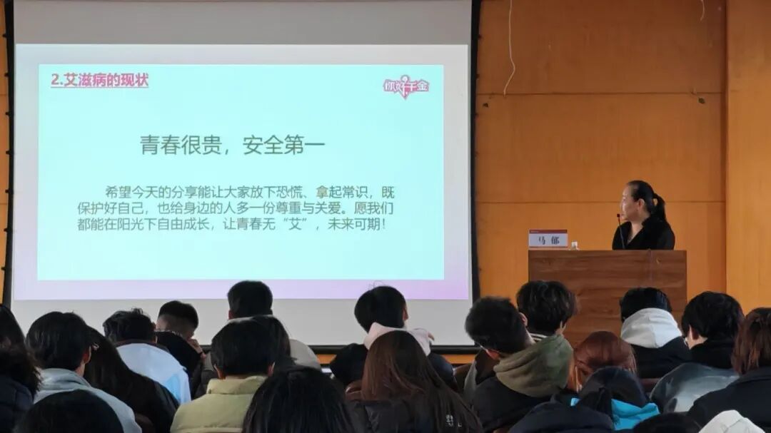 为加强青年学生健康教育,提升艾滋病防范意识与自我保护能力,12月9日下午,由校团委主办的艾滋病防治公益讲座在南校区逸夫楼东004教室顺利举行。本次活动特邀长治市妇幼保健院产二科主任、主任医师马郁担任主讲。马郁主任拥有近三十年妇产科临床与公共卫生科普经验,长期致力于母婴健康与疾病防控工作,为在场师生带来了一场专业严谨、内容生动的防艾知识宣讲。