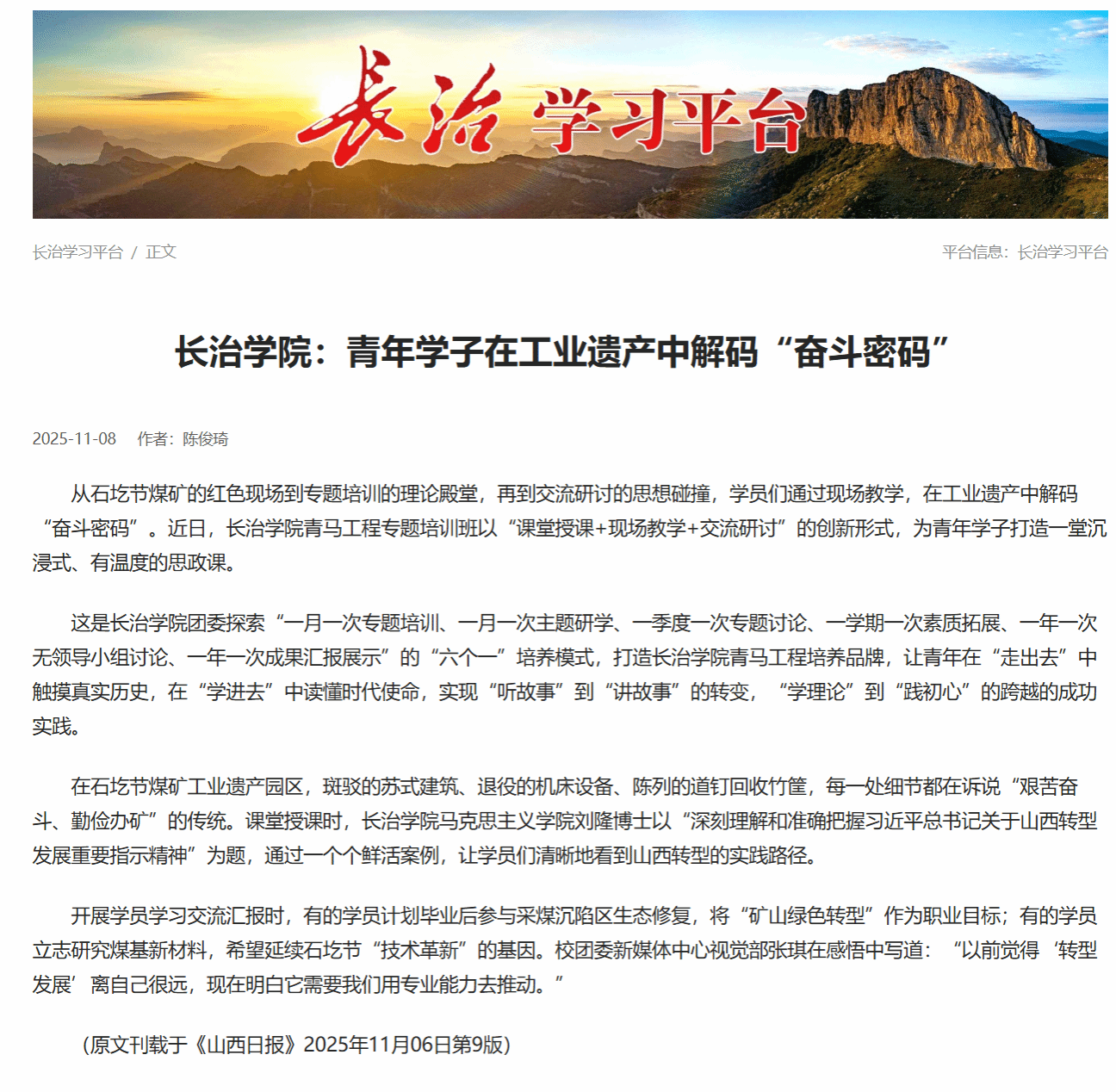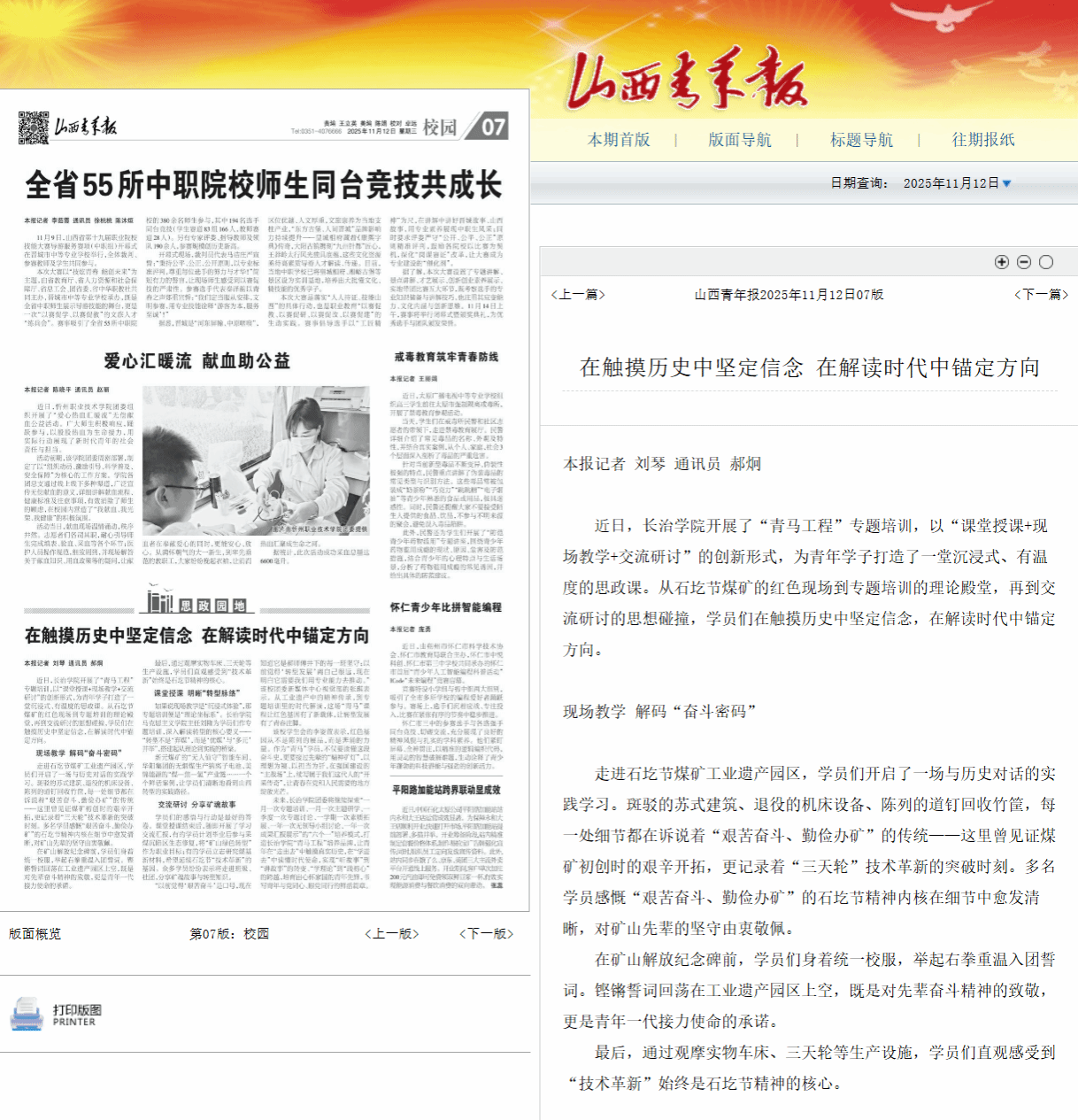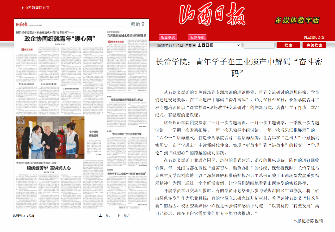 山西日报:长治学院:青年学子在工业遗产中解码“奋斗密码”(2025年11月12日报道)