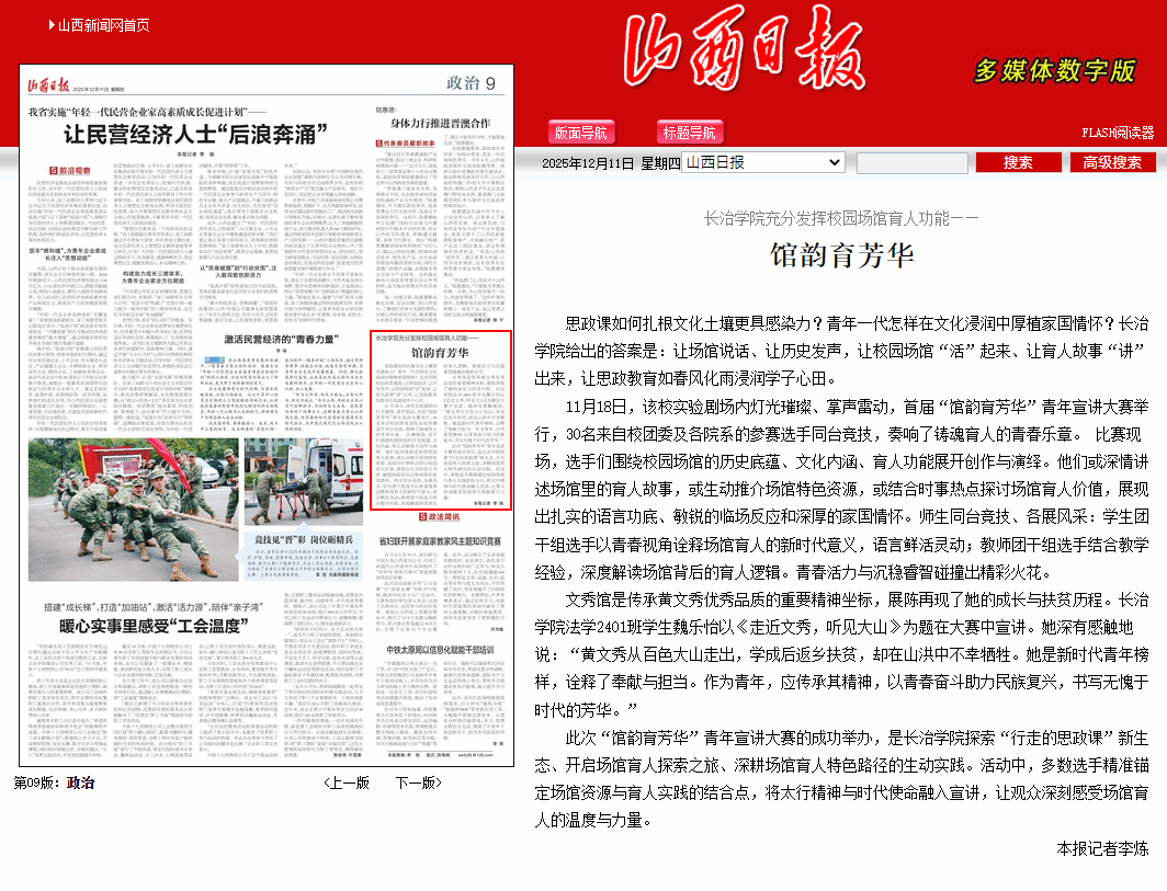 山西日报:长治学院充分发挥校园场馆育人功能——馆韵育芳华 (2025年12月11日报道)
