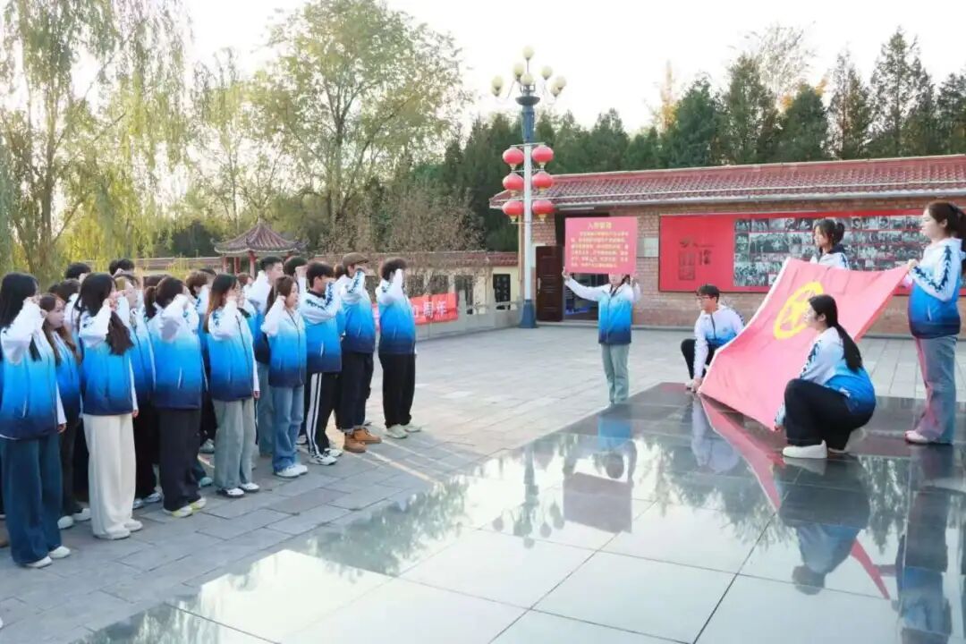 在矿山解放纪念碑前,学员们身着统一校服,举起右拳重温入团宣誓。铿锵誓词回荡在工业遗产园区上空,既是对先辈奋斗精神的致敬,更是青年一代接力使命的承诺。参观尾声,通过观摩实物车床、三天轮等生产设施,学员们直观感受到了“技术革新”始终是石圪节精神的核心,为后续理解山西转型发展埋下伏笔。