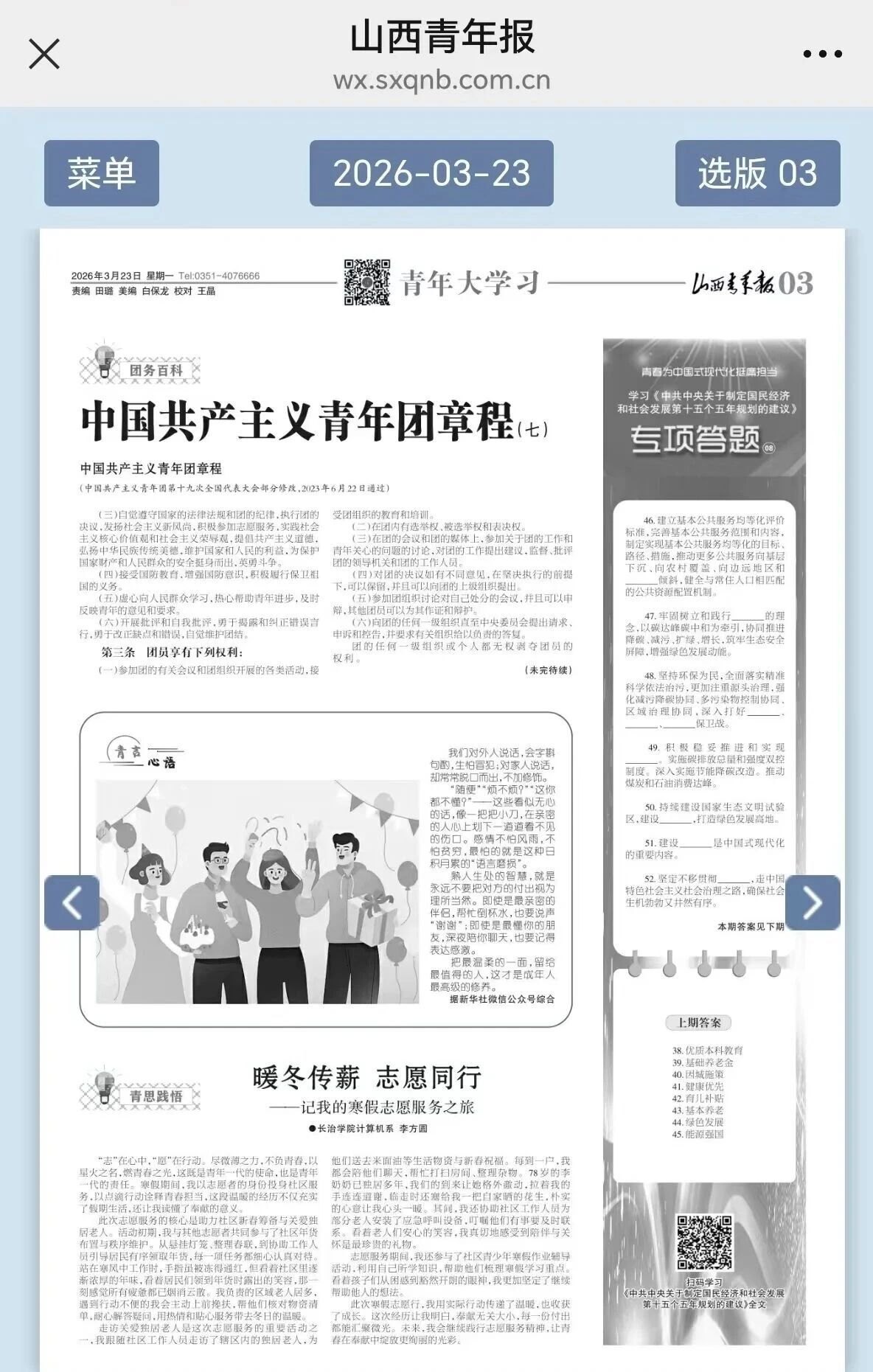 (计算机系学生李方圆寒假期间在社区参加社会实践被山西青年报报道)