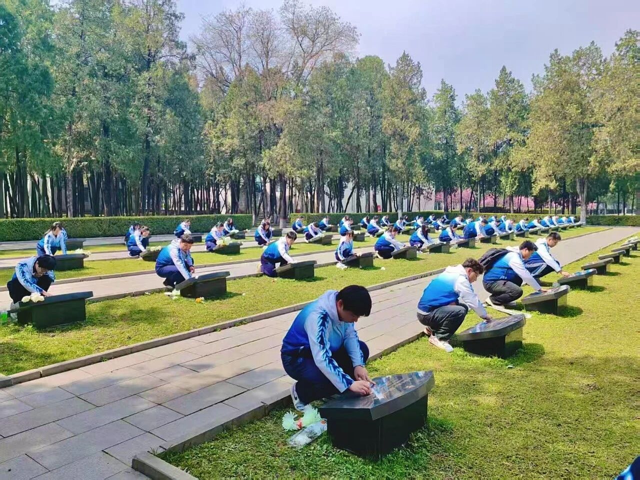 中文系、法律系、经济与管理系、教育系、音乐舞蹈系、数学系、物理系、美术系、化学系等先后前往太行太岳烈士陵园、上党战役北关战地旧址等地开展清明祭扫活动。师生整齐列队,高唱国歌,敬献花篮,肃立默哀,参观纪念馆,重温入党誓词,擦拭烈士墓碑,以最庄重的礼仪表达对革命先烈的崇高敬意与深切缅怀。