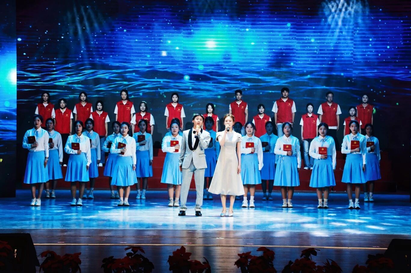 师生同台,歌声嘹亮。这不仅是一首歌,更是一份誓言:“强国有我,因为有你!”现场掌声、喝彩声此起彼伏,气氛燃到极点!