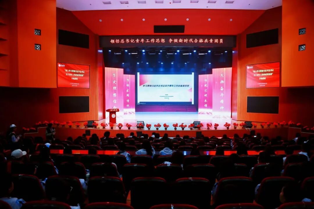 她系统解读了习近平总书记关于青年工作的重要思想,从“培养什么样的青年、怎样培养青年”到“建设什么样的共青团、怎样建设共青团”,既有理论高度,又有实践温度。 同学们认真聆听,弹幕刷屏:“干货满满!”“这堂课我追定了!”