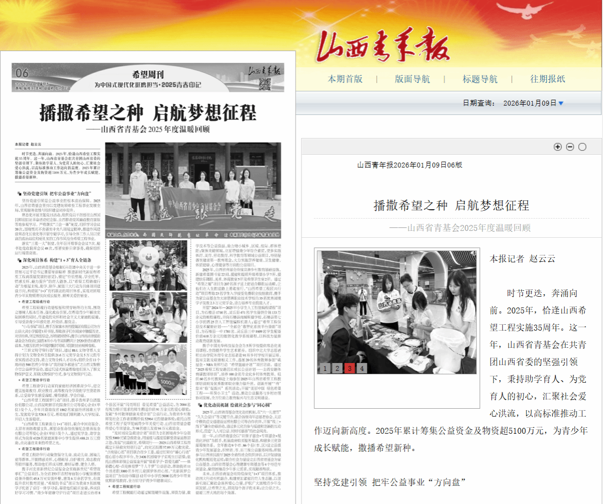 2026年1月9日《山西青年报》对我校“播撒希望之种 启航梦想征程”进行了专题报道,现将全文转载如下: