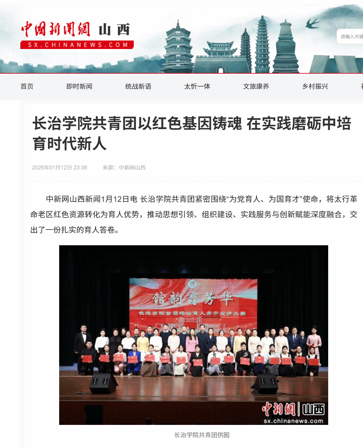 中新网山西新闻1月12日电 长治学院共青团紧密围绕“为党育人、为国育才”使命,将太行革命老区红色资源转化为育人优势,推动思想引领、组织建设、实践服务与创新赋能深度融合,交出了一份扎实的育人答卷。