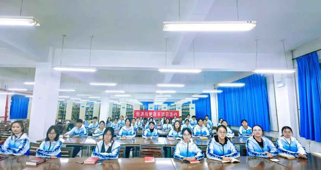 为进一步深入学习贯彻习近平新时代中国特色社会主义思想,弘扬爱国主义精神,强化对团员青年的思想政治引领,引导广大青年以青春之我肩负起民族复兴的重任,10月11日下午,经济与管理系团委携图书馆联合举办“青春献祖国,奋进新征程”示范团日活动。财管2501班全体学生参加,系团委副书记李亮到场指导。