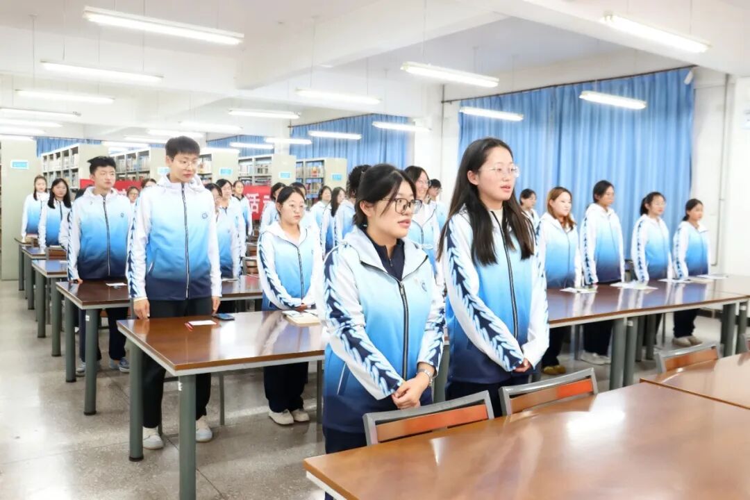 随后,全体同学齐声高唱团歌,铿锵旋律激荡人心,为整场活动奠定了昂扬奋进的情感基调。
